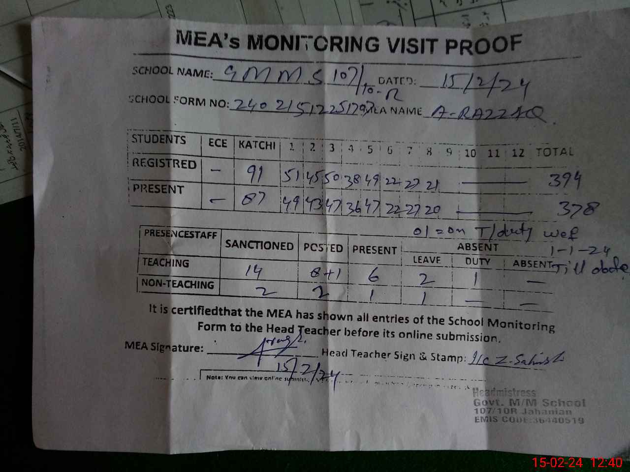 | EMIS Code: 36440519 | Name of School: GMES 107/10-R, JAHANIAN | |||