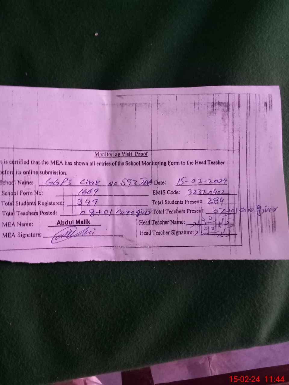 | EMIS Code: 32320402 | Name of School: GGES CHAK NO. 593 TDA | |||