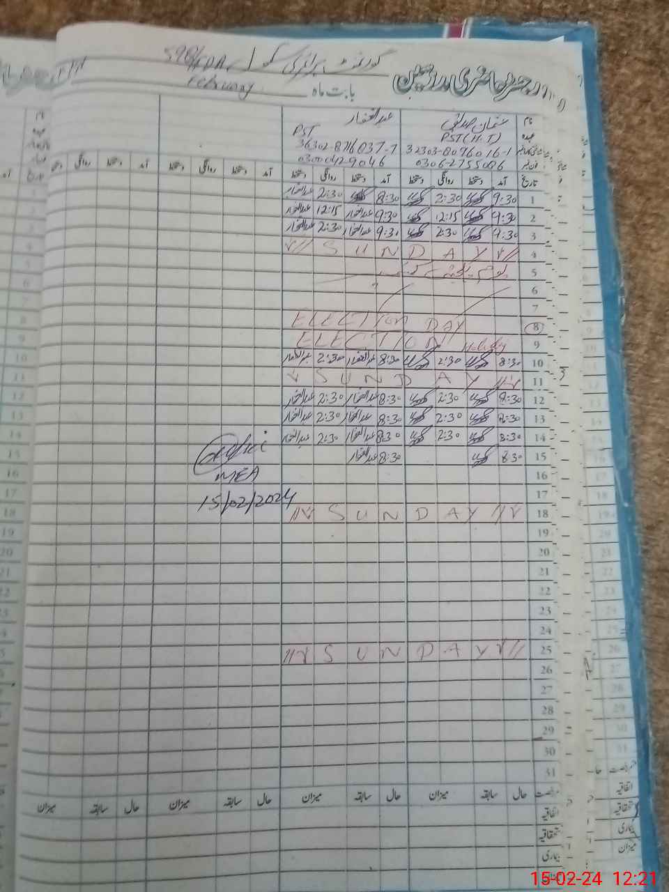 | CNIC | Full Name | Designation | R/C | Absence During Last Calender Month |