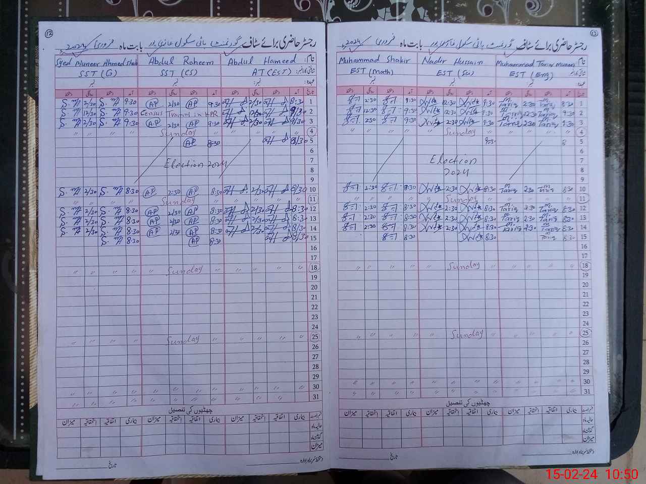 | CNIC | Full Name | Designation | R/C | Absence During Last Calender Month |