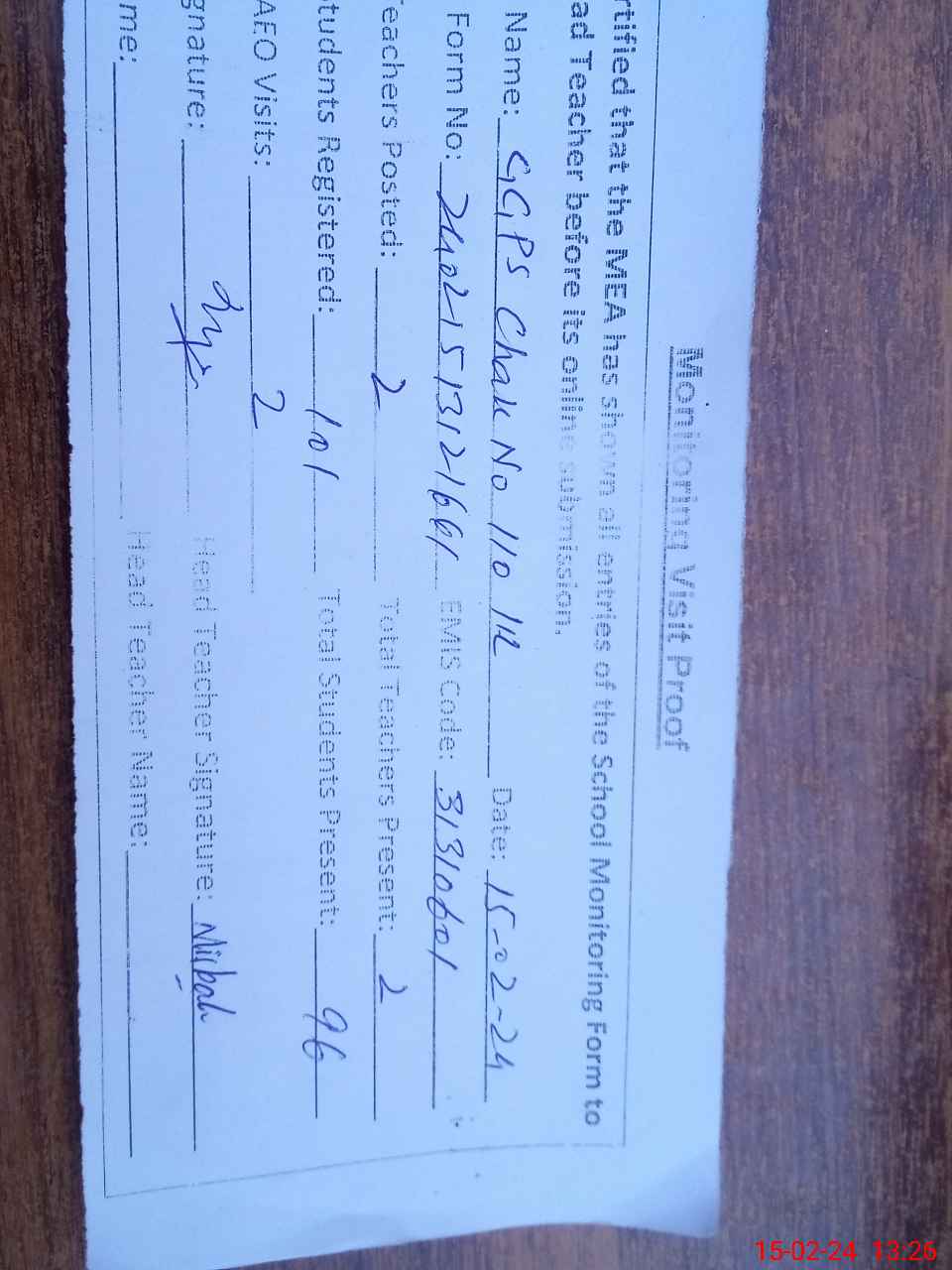 | Certified that this School was Inspected by the Undersigned MEA/DMO Today and the Information Stated Above is as Per Record. | |||||