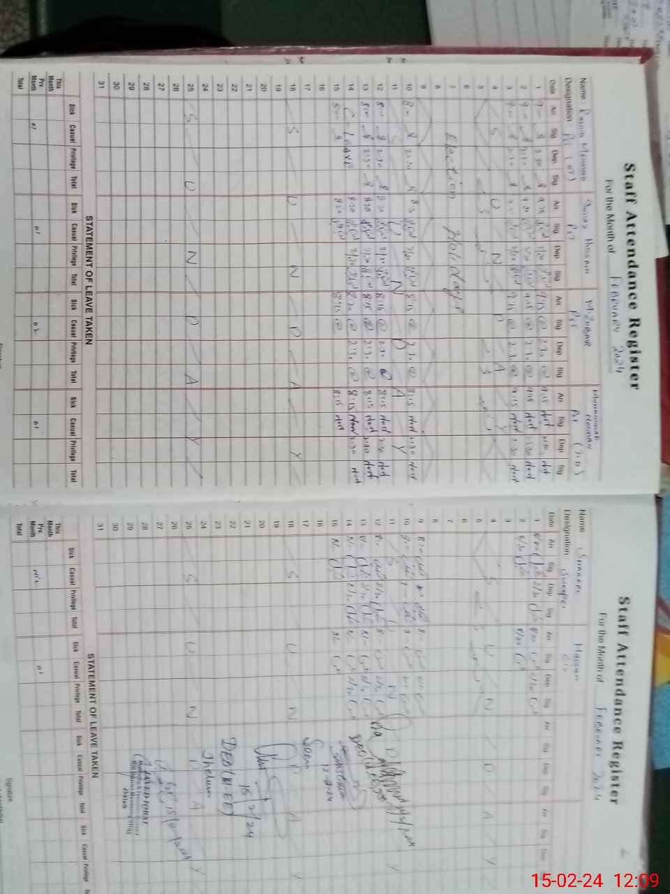 | CNIC | Full Name | Designation | R/C | Absence During Last Calender Month |