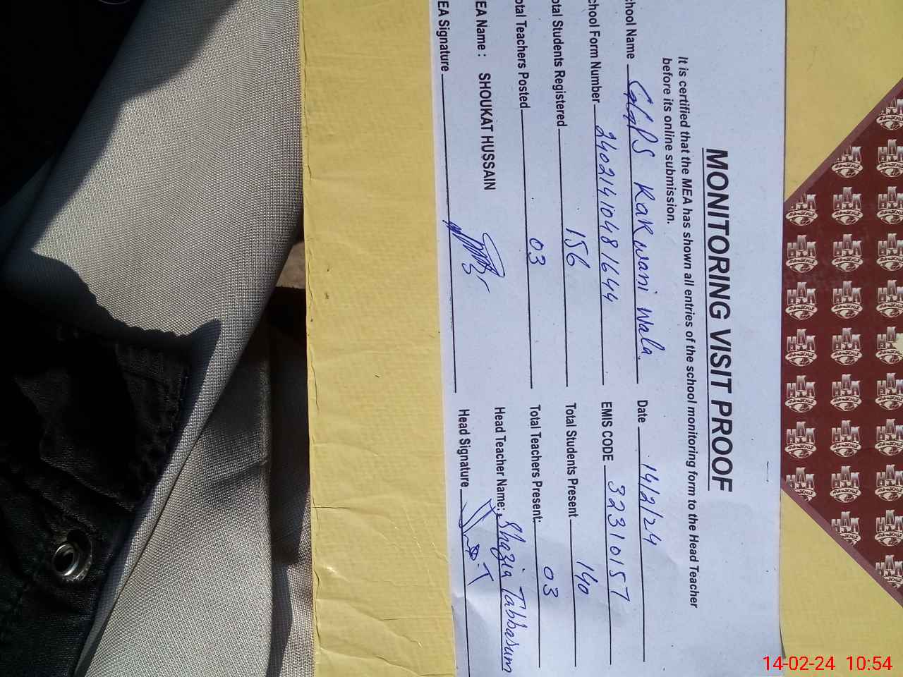 | EMIS Code: 32310157 | Name of School: GGPS KAKWANI WALA | |||