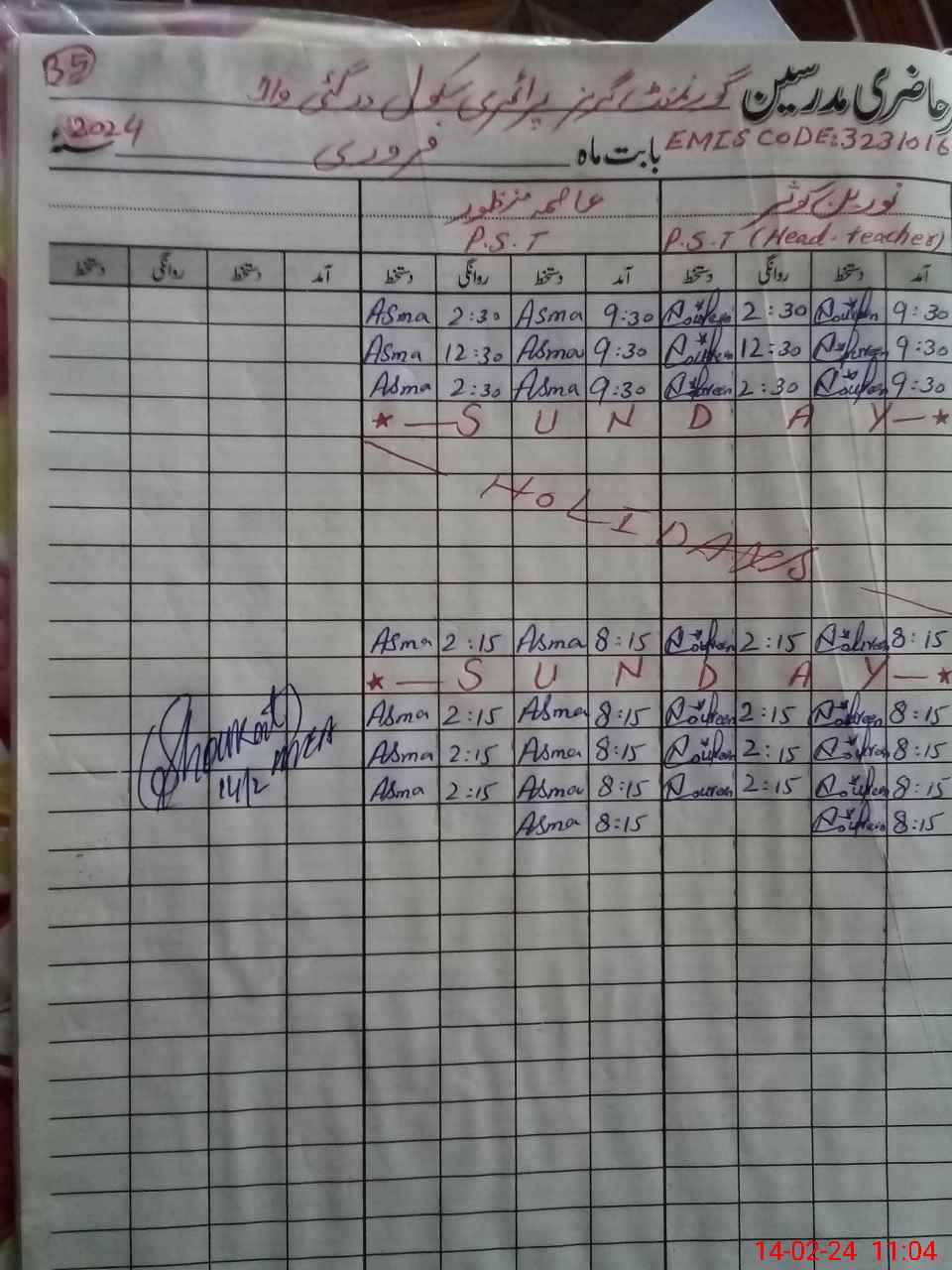 | Name: NO**** KO**** Designation: (School Headmaster's/Headmistress's) PST Phone/Cell Number: 03**** |