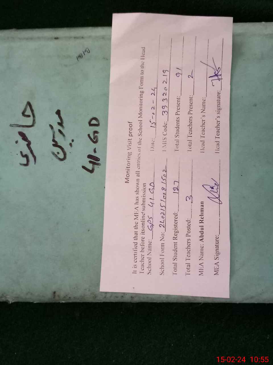 | EMIS Code: 39320219 | Name of School: GPS CHAK NO 41/G.D | |||
