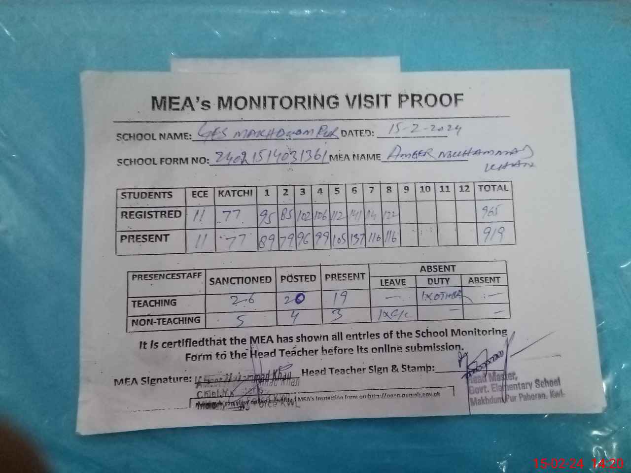 | EMIS Code: 36420062 | Name of School: GES MAKHDOOM PUR, KHANEWAL | |||