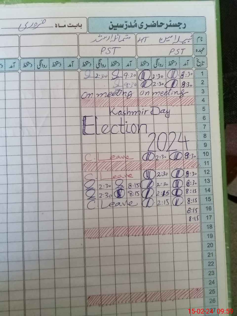 | CNIC | Full Name | Designation | R/C | Absence During Last Calender Month |