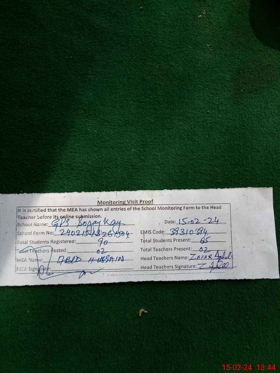| Certified that this School was Inspected by the Undersigned MEA/DMO Today and the Information Stated Above is as Per Record. | |||||