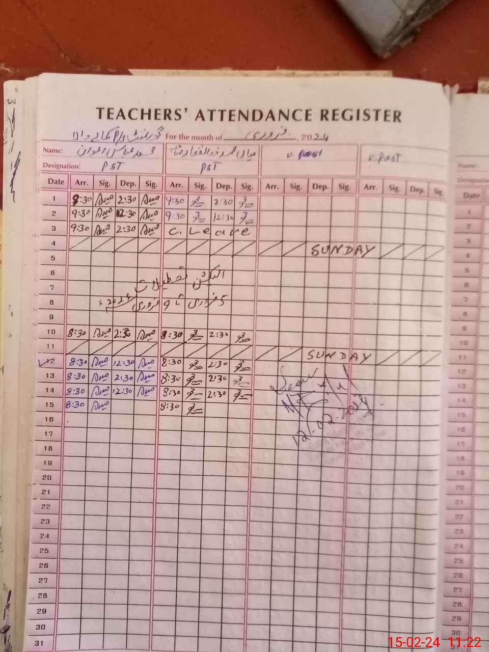 | Name: M.AB**** Designation: (School Headmaster's/Headmistress's) PST Phone/Cell Number: 03**** |