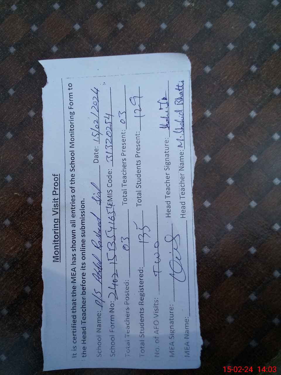 | EMIS Code: 31320254 | Name of School: GPS BASTI ABDUL RASHEED SIAL | |||