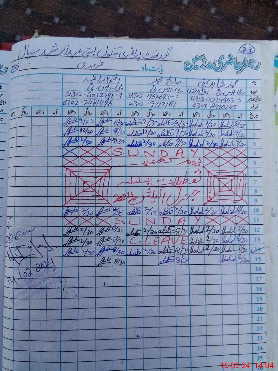 | Name: Mu**** Sh**** Bh**** Designation: (School Headmaster's/Headmistress's) PST Phone/Cell Number: 03**** |