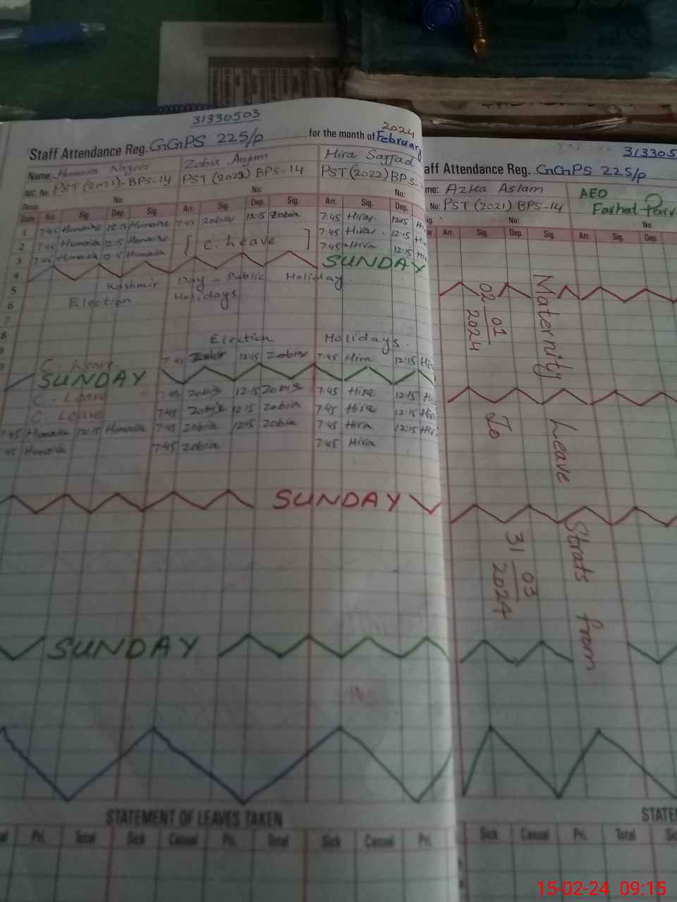 | Leave | Duty | Absent | Maternity | Medical | Ex- Pak |