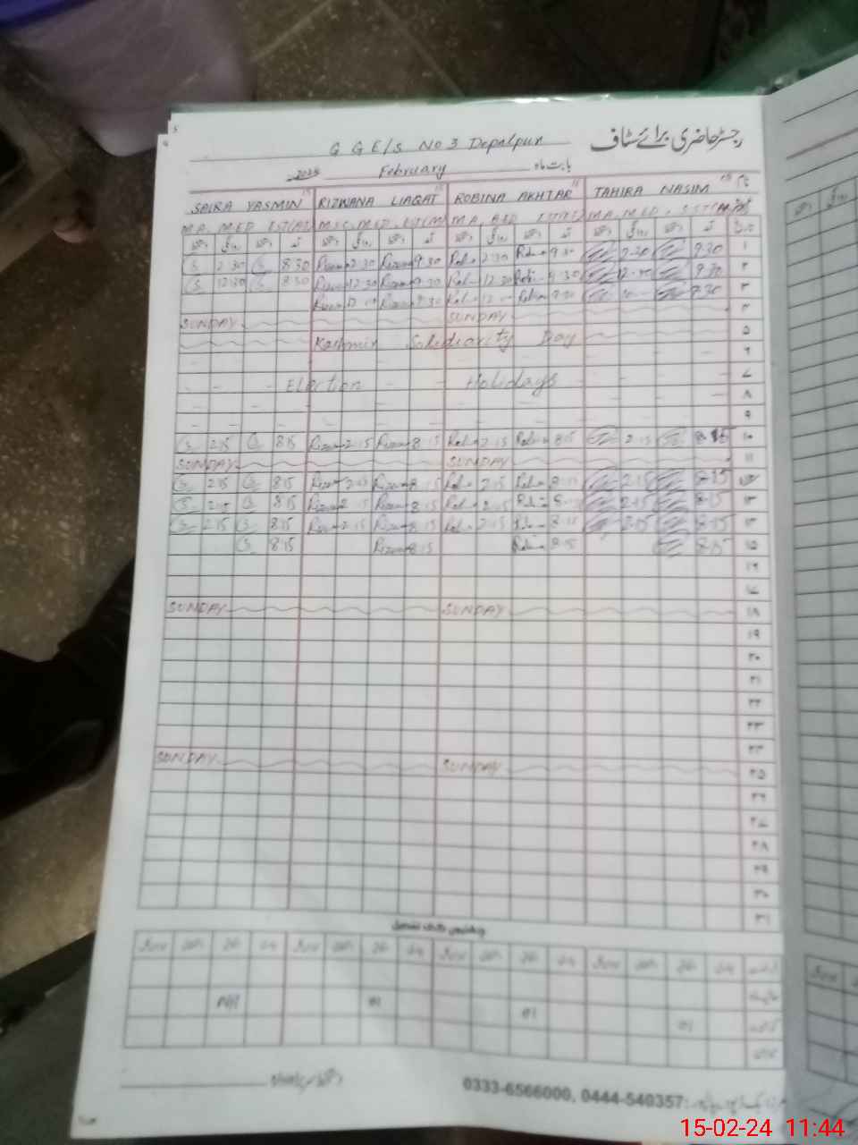 | Name: Ab**** Pe**** Designation: (School Headmaster's/Headmistress's) EST Phone/Cell Number: 03**** |