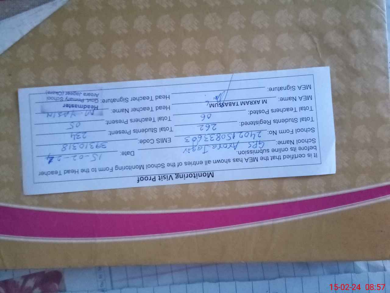 | EMIS Code: 39310318 | Name of School: GPS ARORA JAGIR | |||