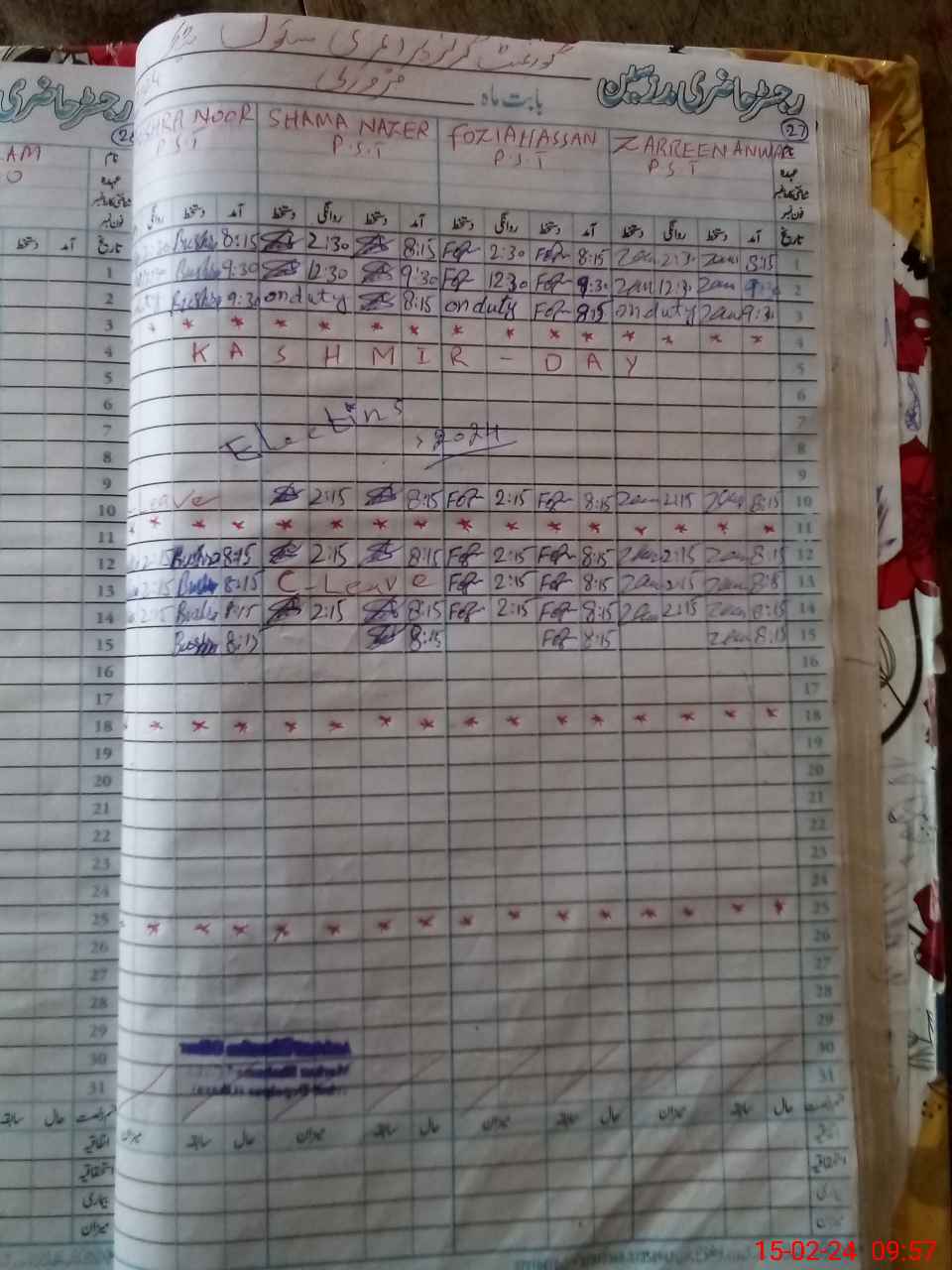 | CNIC | Full Name | Designation | R/C | Absence During Last Calender Month |