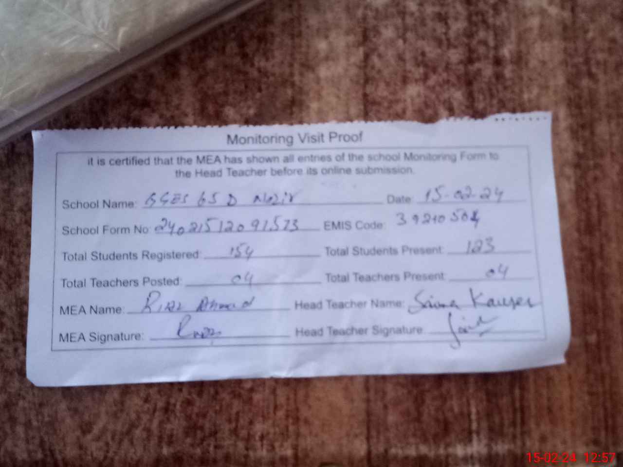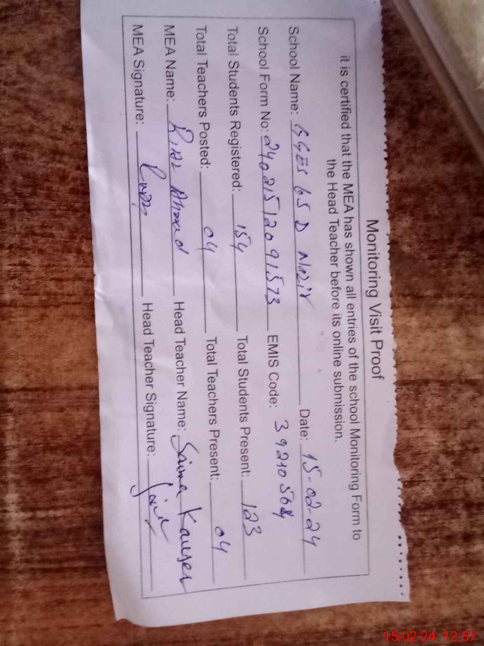 | EMIS Code: 39210564 | Name of School: GGES 65/D NAZIR | |||