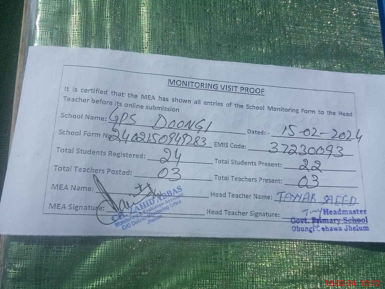 | EMIS Code: 37230093 | Name of School: GPS DHUNGI | |||