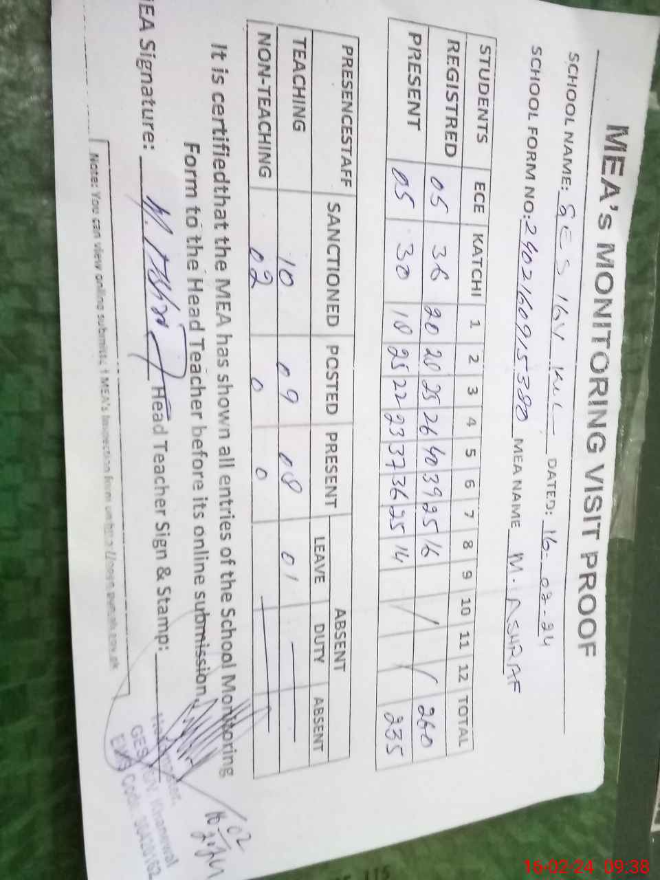 | Monitoring Date: 16-02-2024 | Start Time: 16-02-2024 09:15 AM | End Time: 16-02-2024 09:38 AM | Name of MEA: MU**** AS**** | |