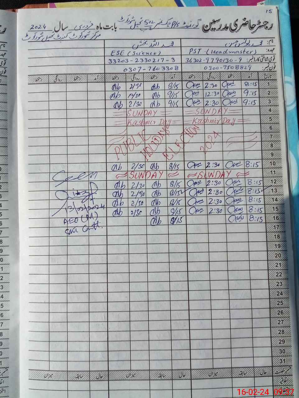 | Name: MU**** YO**** HA**** Designation: (School Headmaster's/Headmistress's) PST Phone/Cell Number: 03**** |