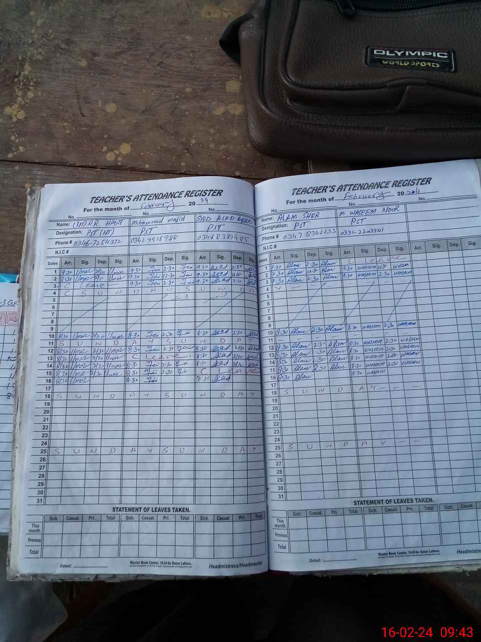 | Name: Um**** Ha**** Designation: (School Headmaster's/Headmistress's) PST Phone/Cell Number: 03**** |