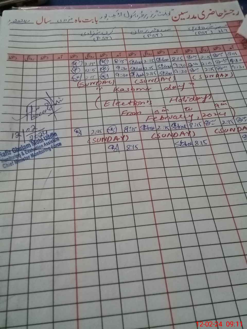 | Name: Sh**** No**** Designation: (School Headmaster's/Headmistress's) PST Phone/Cell Number: 03**** |