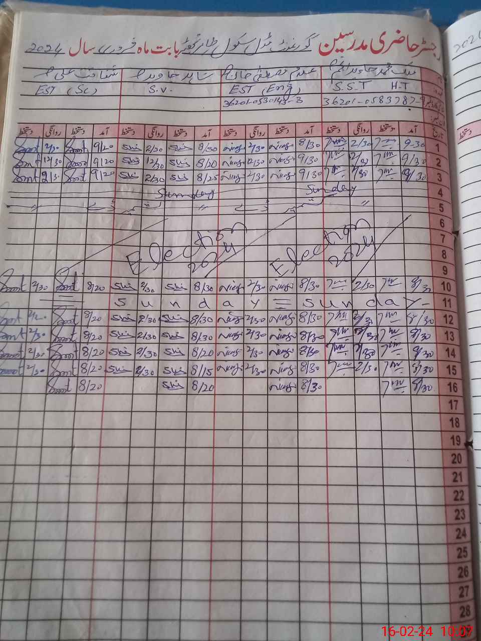 | CNIC | Full Name | Designation | R/C | Absence During Last Calender Month |