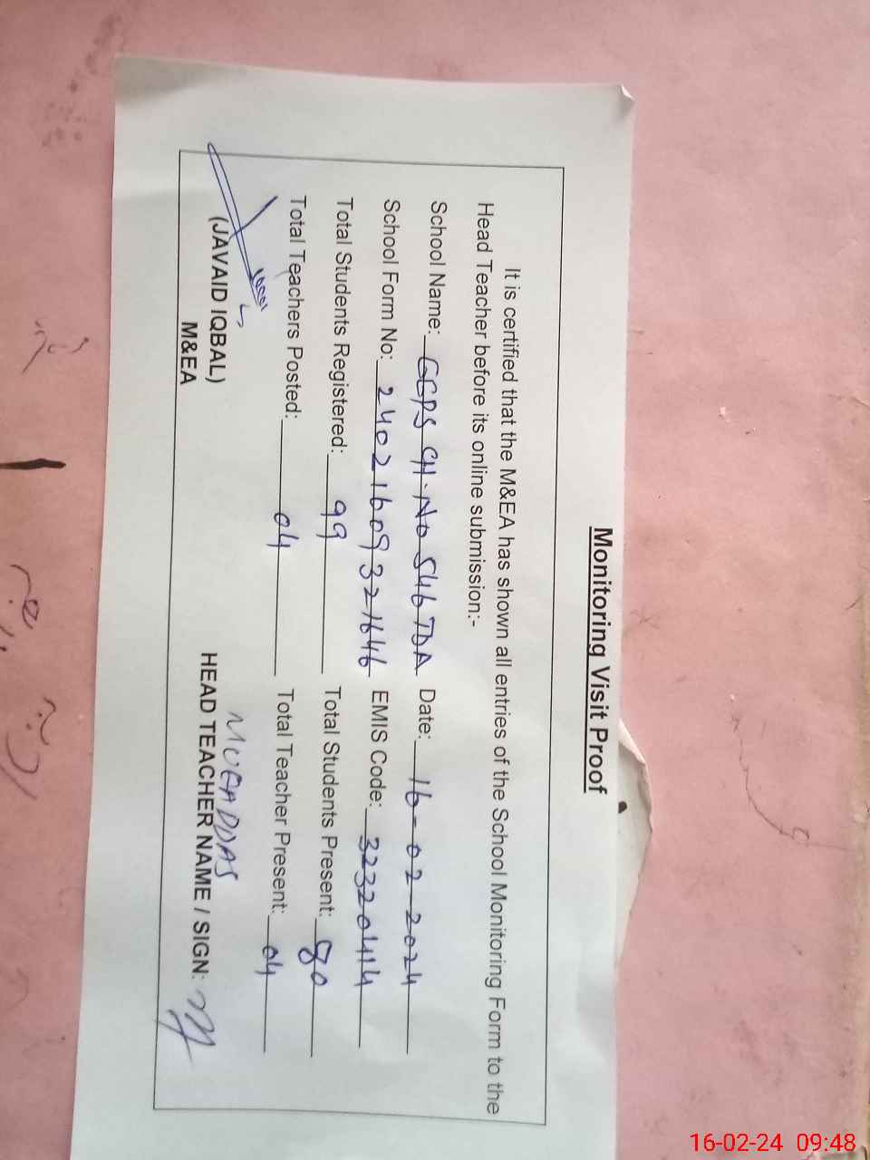 | EMIS Code: 32320414 | Name of School: GGPS CHAK NO. 546 TDA | |||