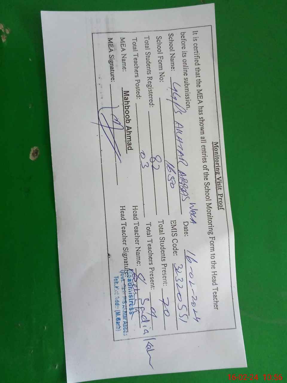 | EMIS Code: 32320551 | Name of School: GGPS AKHTER ABBAS WALA | |||