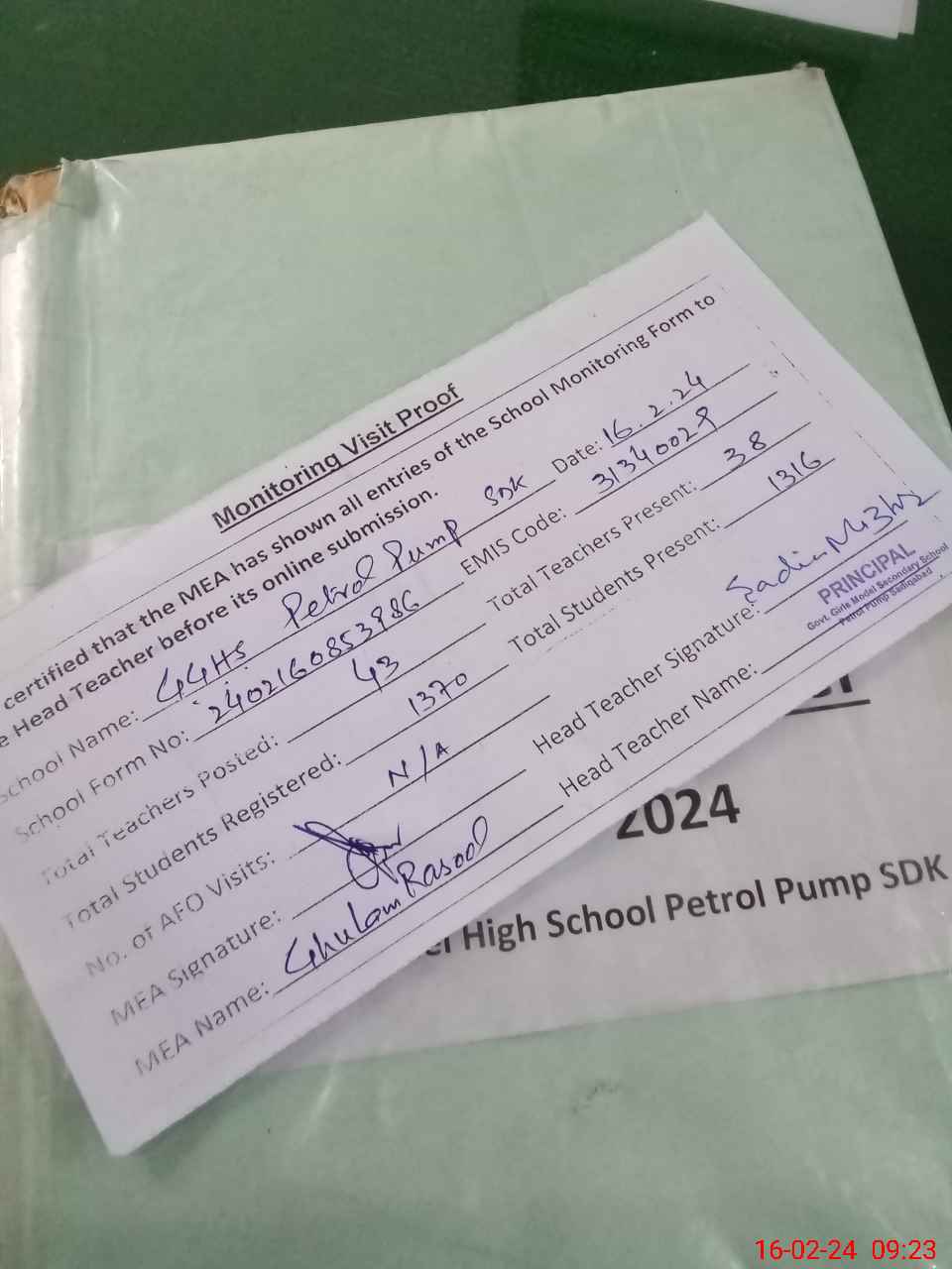 | EMIS Code: 31340029 | Name of School: GGHS PETROL PUMP S.D.K | |||