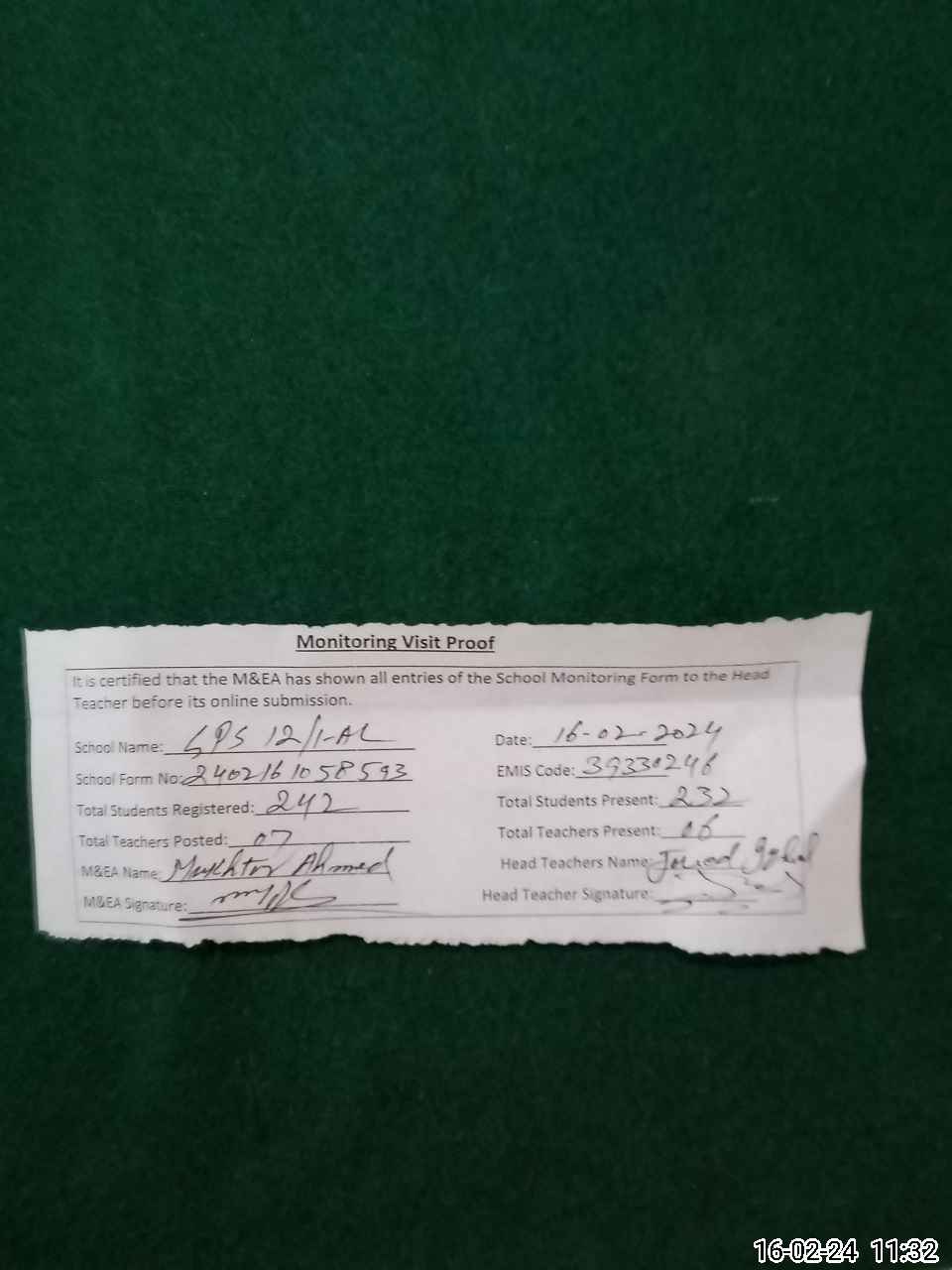 | EMIS Code: 39330246 | Name of School: GPS CHAK 12/1-AL | |||