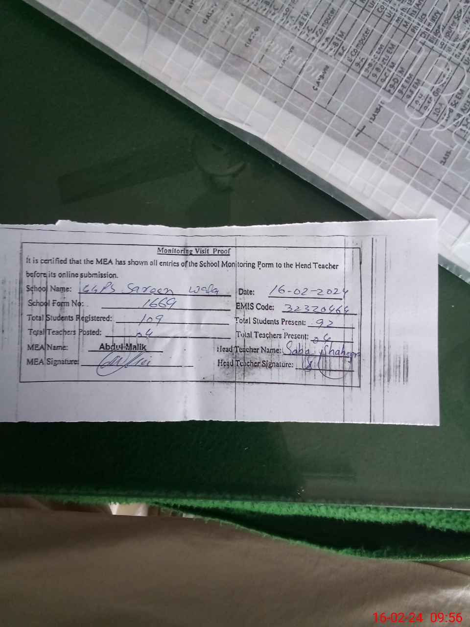| EMIS Code: 32320464 | Name of School: GGPS SAREEN WALA | |||