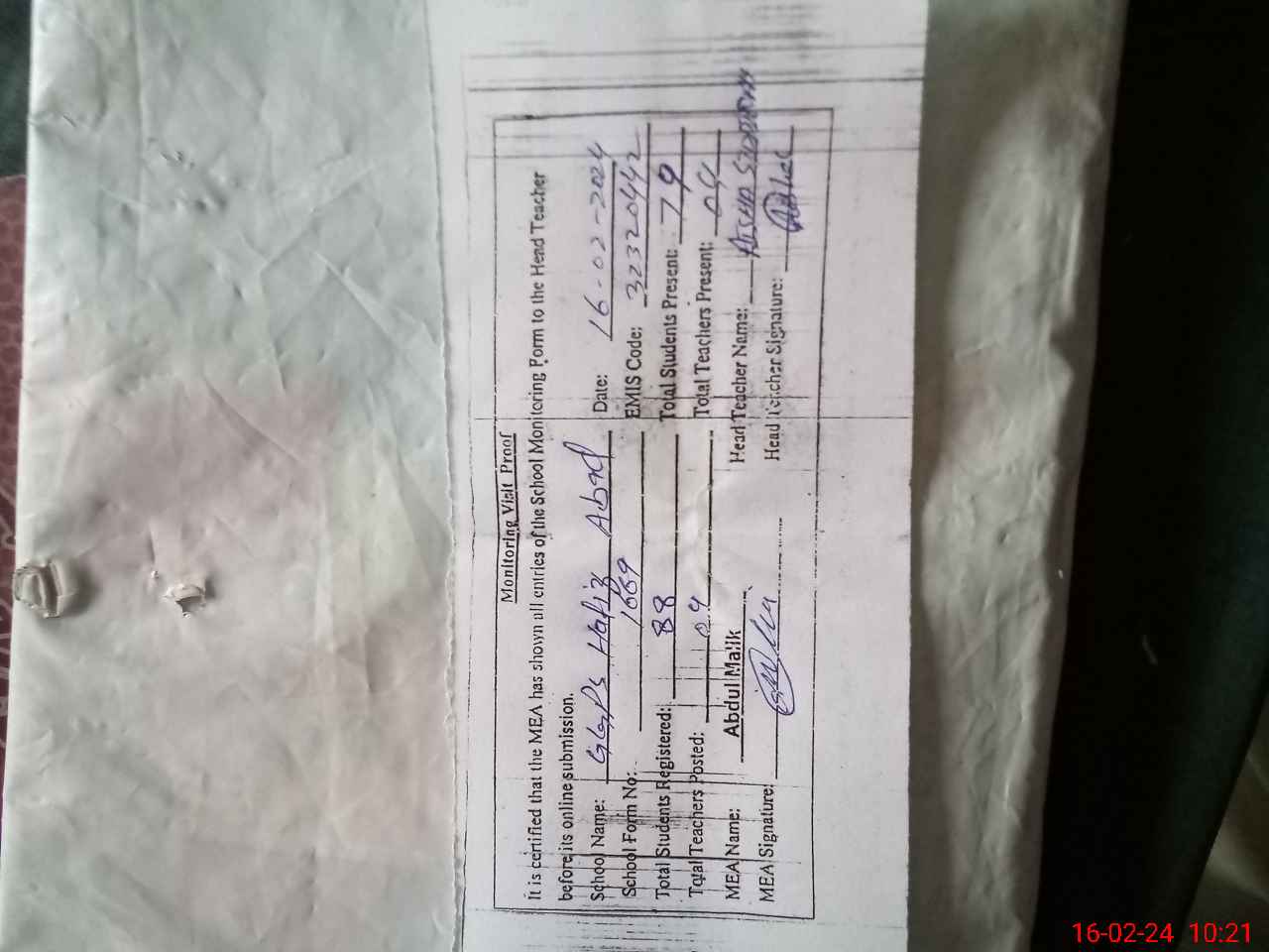 | EMIS Code: 32320442 | Name of School: GGPS HAFIZ ABAD | |||