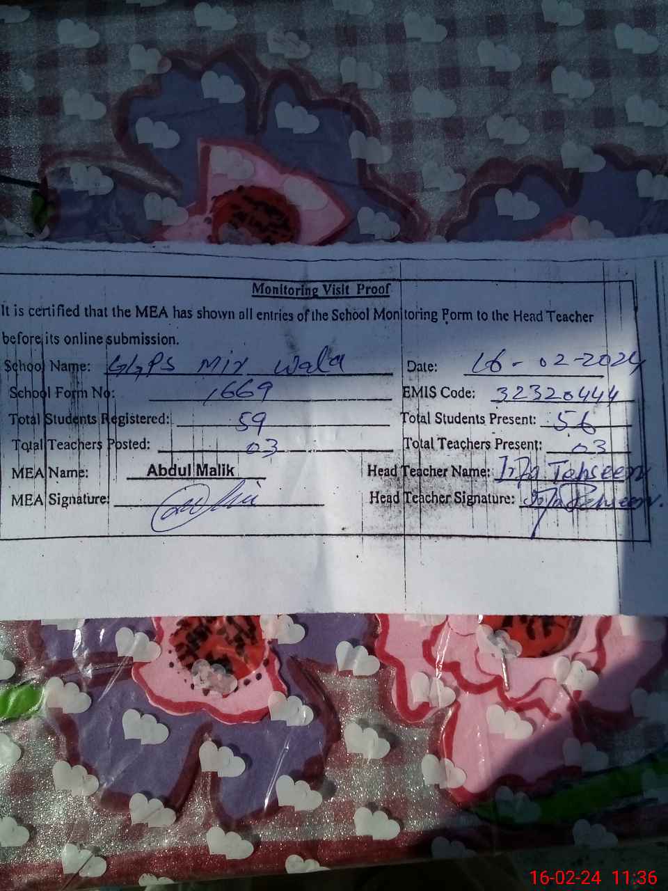 | EMIS Code: 32320444 | Name of School: GGPS MIR WALA | |||