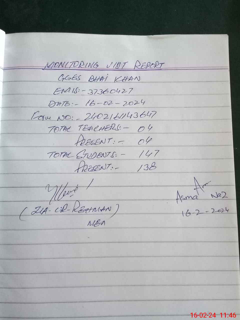 | EMIS Code: 37360427 | Name of School: GGES BHAI KHAN | |||