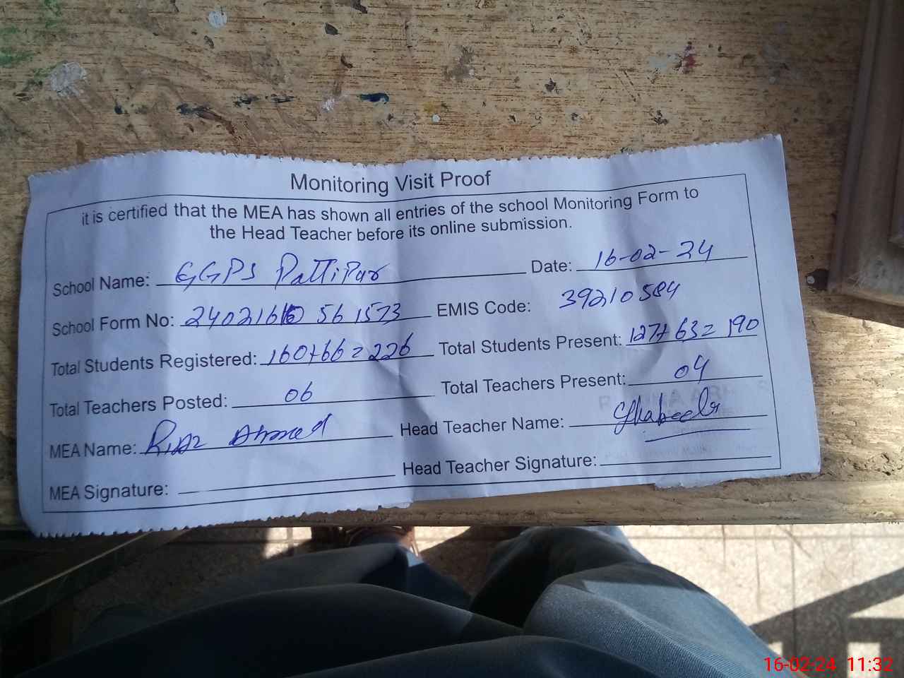 | EMIS Code: 39210584 | Name of School: GGPS PATTI PUR DAKHLI MALIK PUR | |||