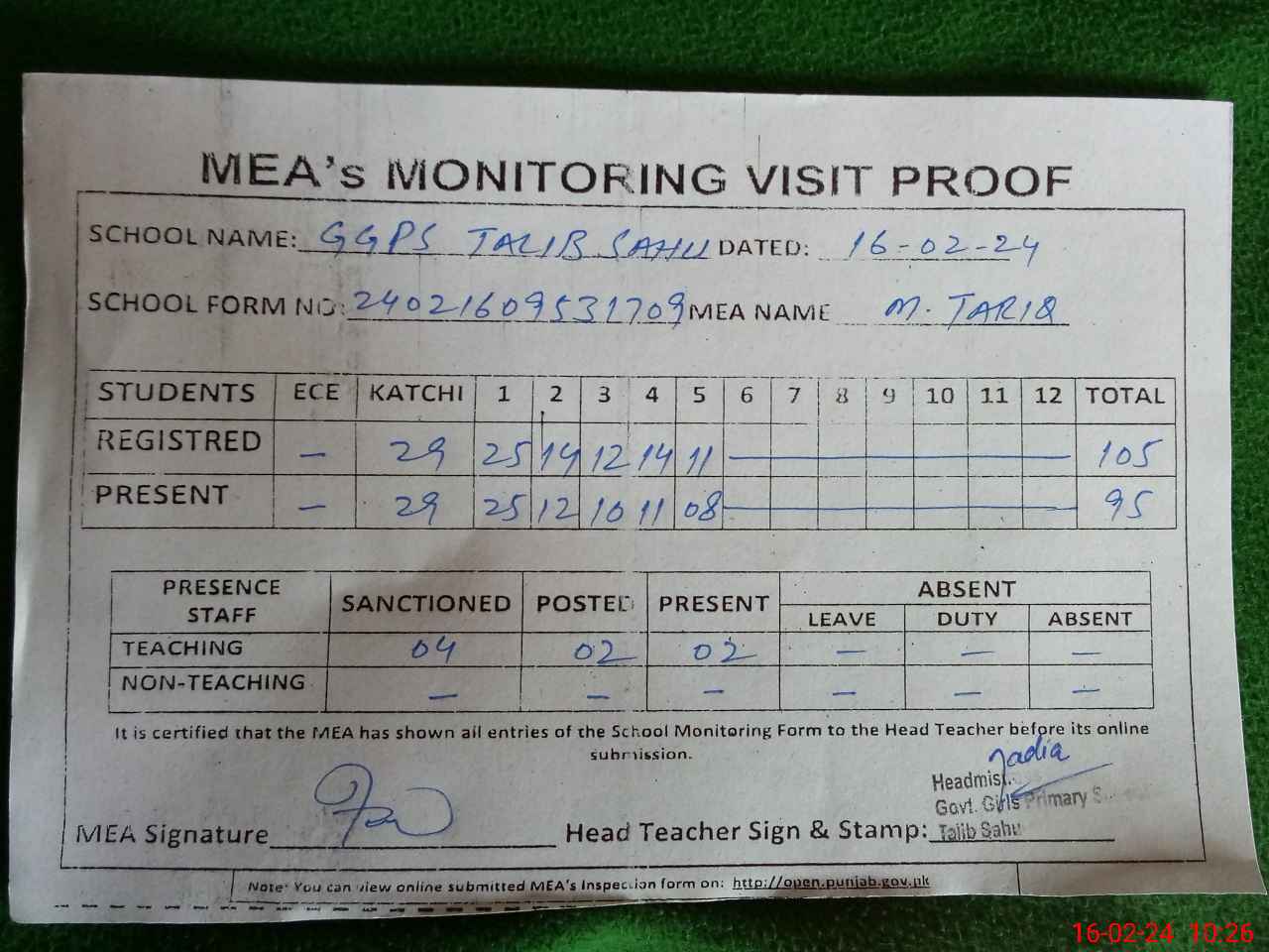 | EMIS Code: 36410600 | Name of School: GGPS TALIB SAHOO | |||