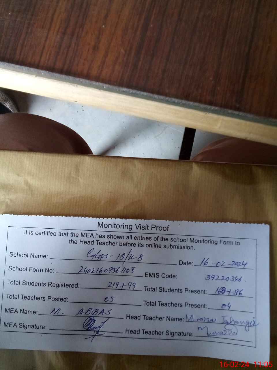 | EMIS Code: 39220346 | Name of School: GGPS 18 KB | |||