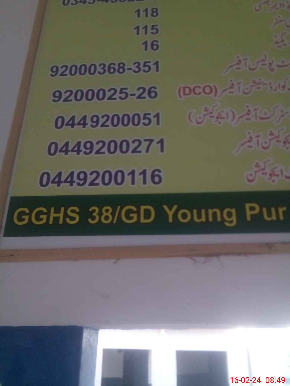 | EMIS Code: 39320113 | Name of School: GGHS 38/G.D YOUNG PUR | |||