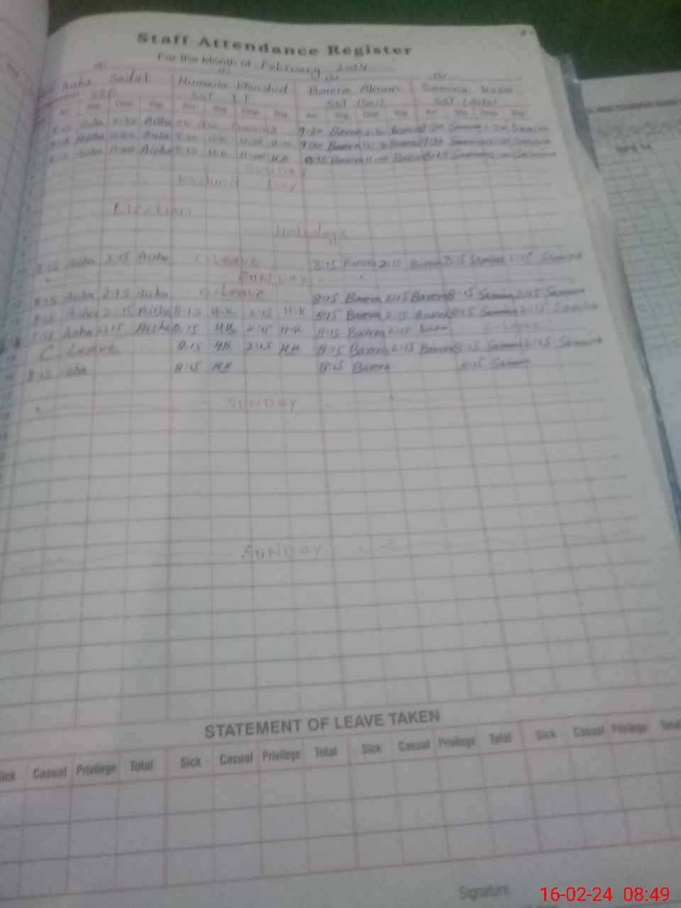 | Leave | Duty | Absent | Maternity | Medical | Ex- Pak |