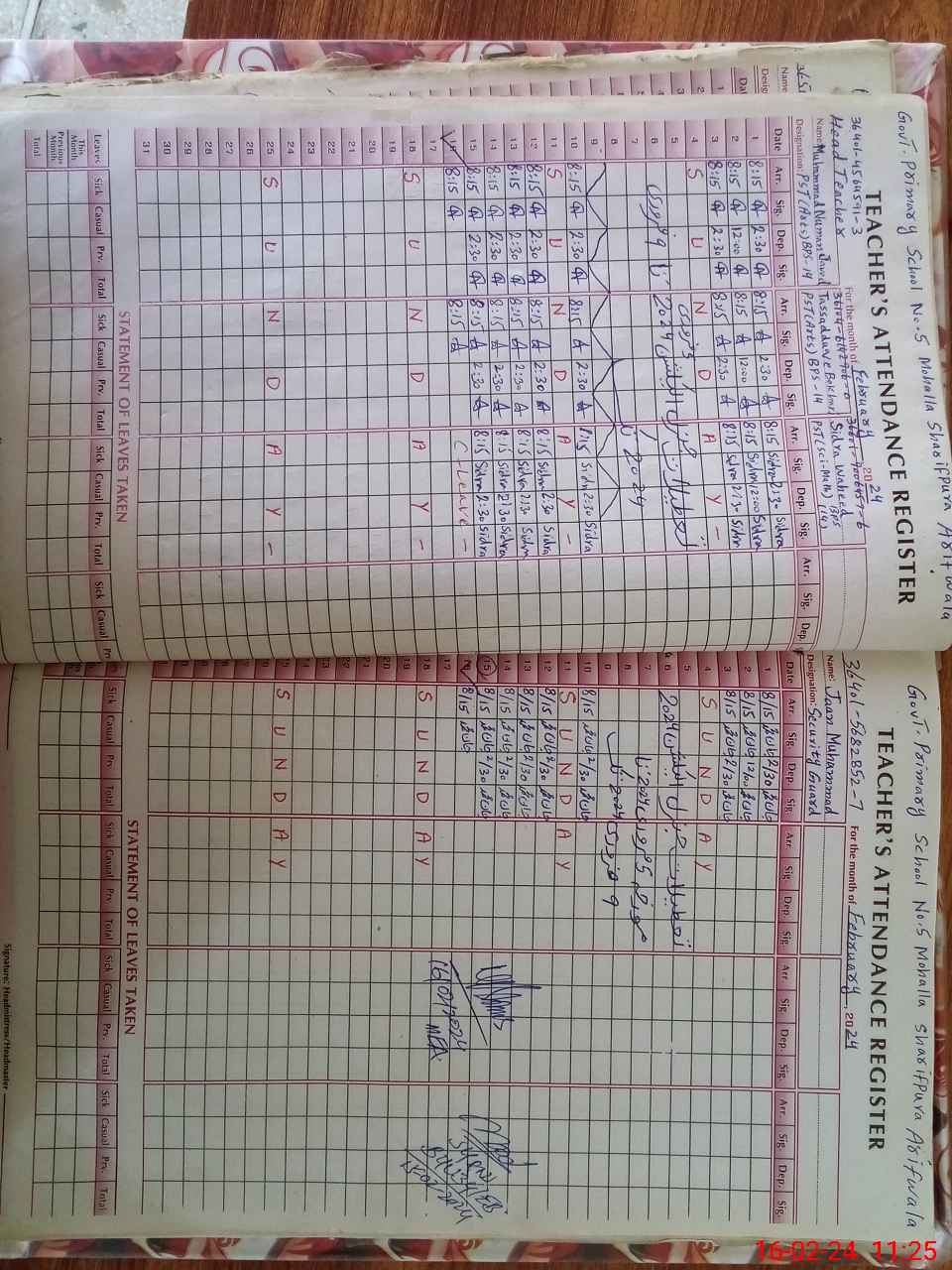 | Name: MU**** NA**** Designation: (School Headmaster's/Headmistress's) PST Phone/Cell Number: 03**** |