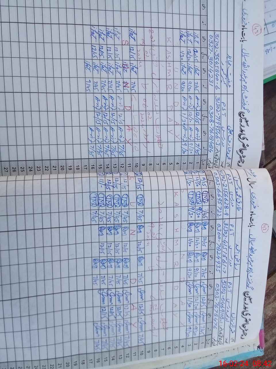 | CNIC | Full Name | Designation | R/C | Absence during last cal. month |