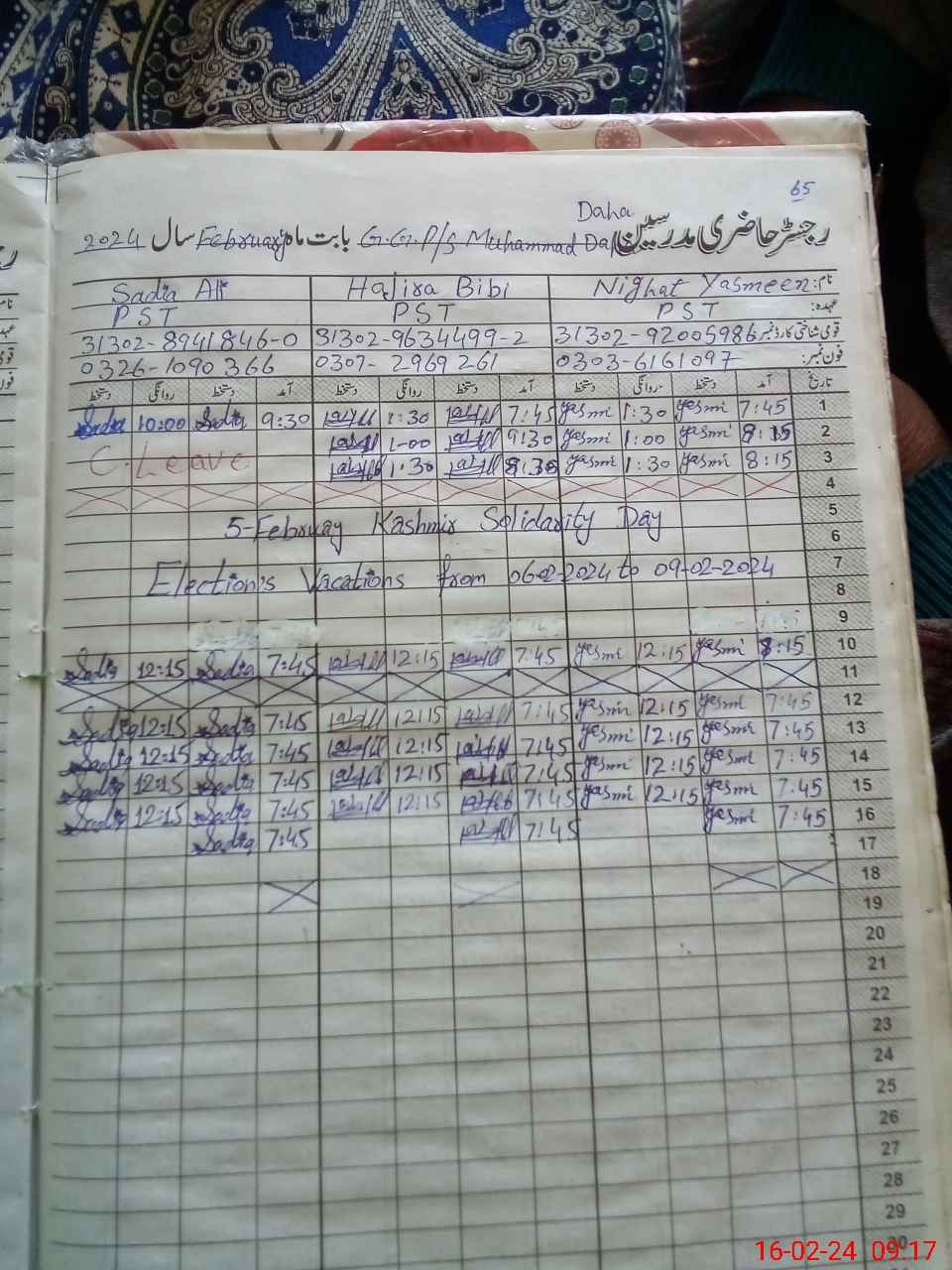 | Name: SA**** IB**** Designation: (School Headmaster's/Headmistress's) PST Phone/Cell Number: 03**** |
