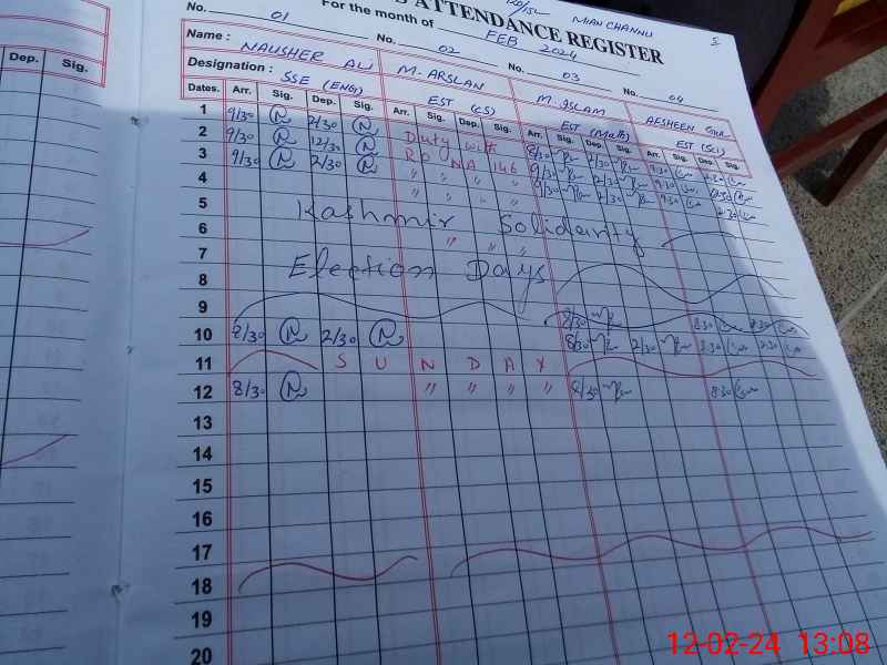 | CNIC | Full Name | Designation | R/C | Absence During Last Calender Month |
