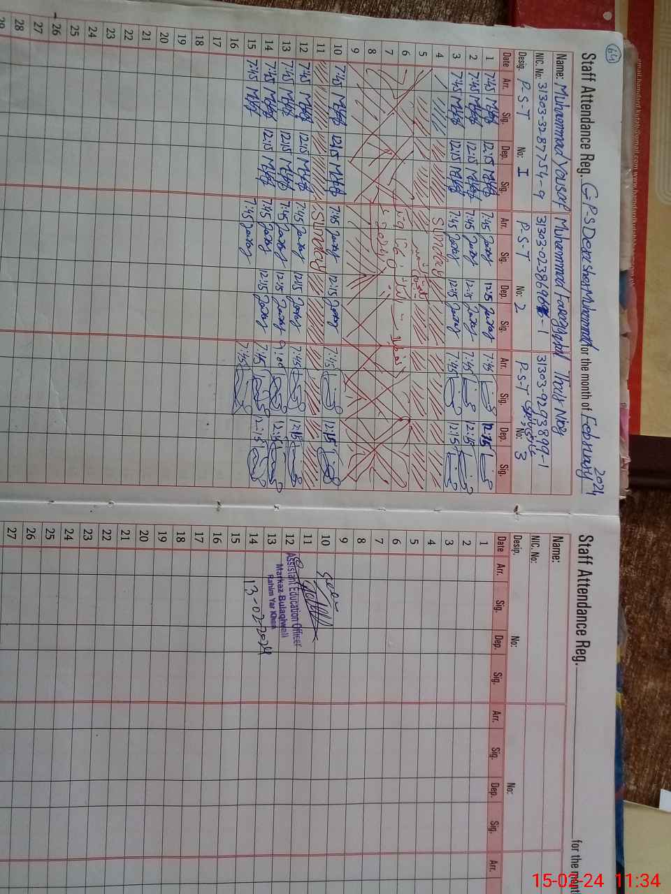 | CNIC | Full Name | Designation | R/C | Absence during last cal. month |