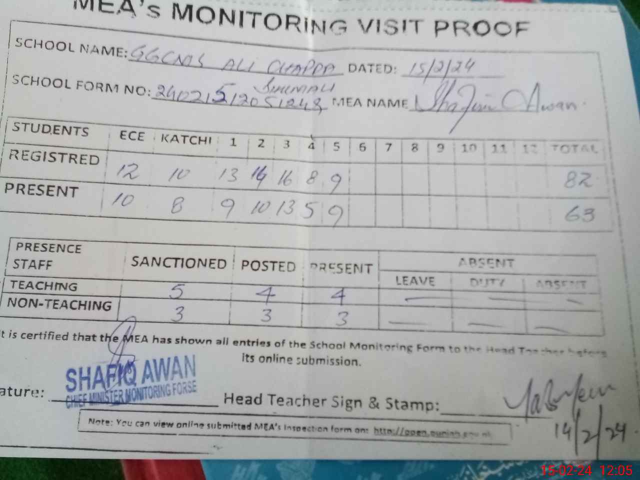 | EMIS Code: 36410474 | Name of School: GGCMS ALI CHAPPA SHUMALI ABDUL HAKIM | |||