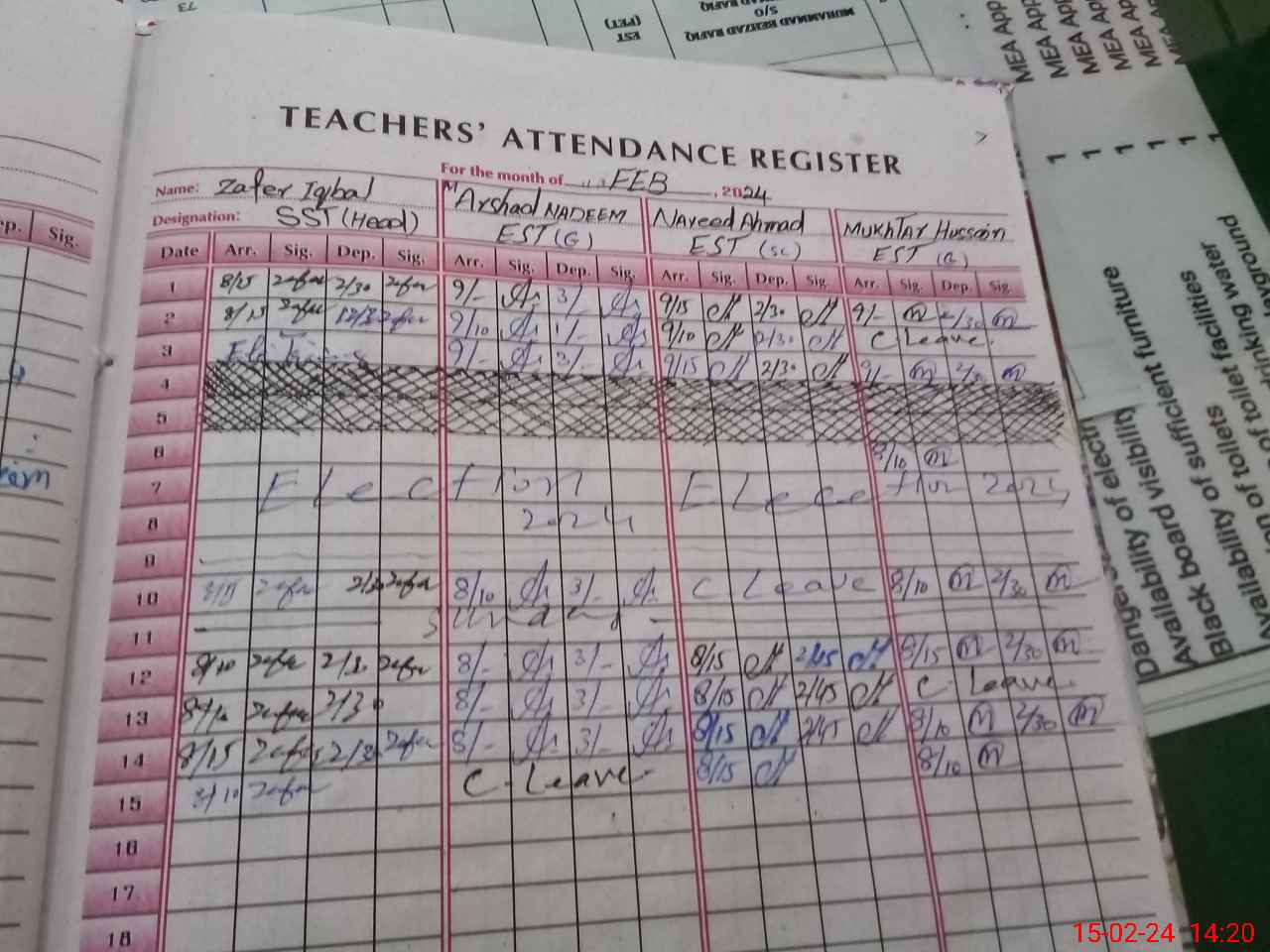 | Attendance Register | Head Teacher | MEA with School | Visit Proof |