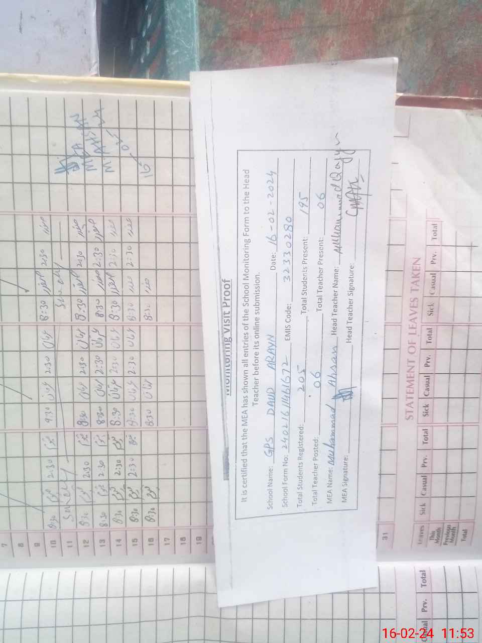 | EMIS Code: 32330280 | Name of School: GPS DAOUD ARAIN | |||