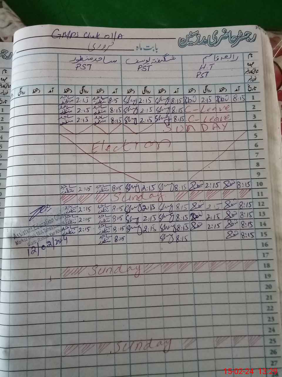 | Name: Ra**** Qa**** Designation: (School Headmaster's/Headmistress's) PST Phone/Cell Number: 03**** |