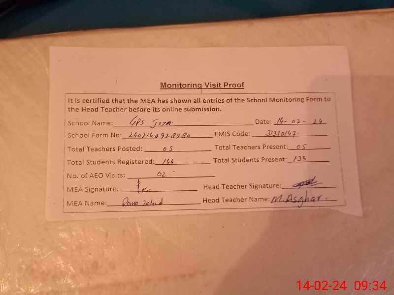 | EMIS Code: 31310147 | Name of School: GPS JOIYA BASTI JOIYA | |||