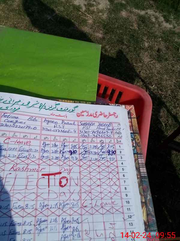 | CNIC | Full Name | Designation | R/C | Absence During Last Calender Month |